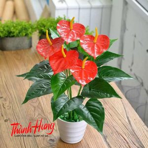 Cây Hồng Môn rực rỡ màu sắc, khi đặt trong nhà sẽ làm không gian trở nên sáng sủa và tươi mới hơn. Ngoài ra, các chiếc lá hình trái tim và màu hoa đầy sức sống của loại cây phong thủy này không chỉ giúp căn phòng trở nên hấp dẫn, mà còn mang lại may mắn cho chủ nhân.